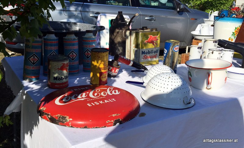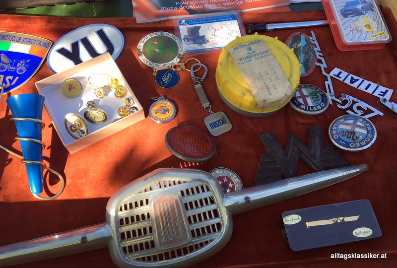 Man hat ja schon Mühe sich von den vereinzelten automobilen Perlen der Marktbesucher loszueisen, die aus der leasinggrauen Alltagsautomasse hervorstechen. Da stößt man dann neben der üblichen Puch- und Volkswagenschar auch auf Pretiosen wie einem Lancia Aprilia, Porsche 914 oder 220er Benz Coupe.