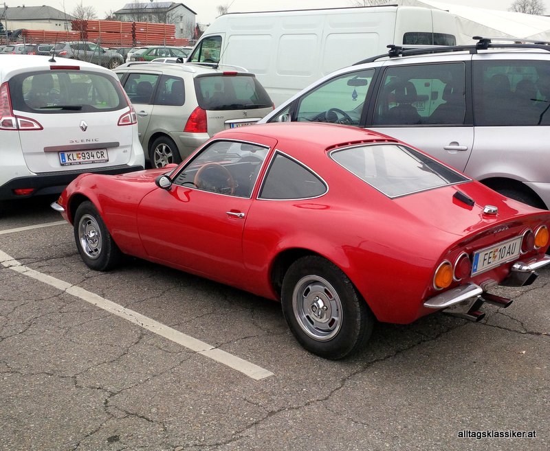 der opel gt, ein kompaktes coupe mit äußerst sportlicher karosserie und klappscheinwerfern, wurde von opel zwischen 1968 und 1973 produziert. sein markantes cokebottle-design erinnert stark an die corvette jener tag, nur eben auf das europäische maß geschrumpft. auch beim motor musste es zwei nummern kleiner und die hälfte der zylinderanzahl sein. das schnittige äußere versprach mehr als die technik hergab, die kleinen vierzylindermotoren leisteten maximal 90ps, den sparefrohs unter den coupefahrern reichten auch 60 pferdestärken.