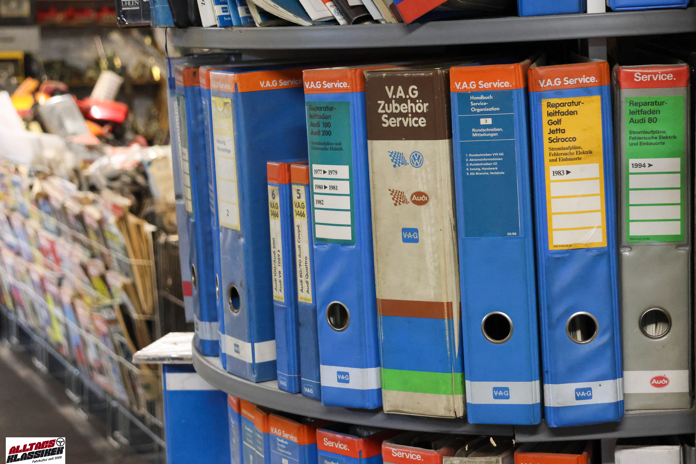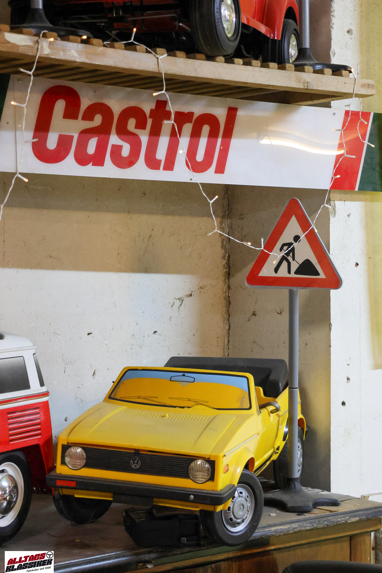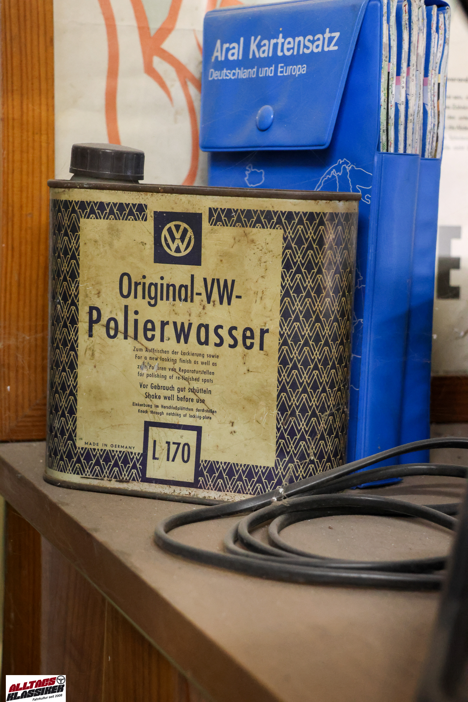 Man kann eben nicht alles haben. Dafür konnten wir einen dampfend heißen Kaffee genießen, der uns früh morgens die Augen öffnete und uns wieder einmal staunen ließ. Staunen über die Vielfalt an Fahrzeugen, zeitgenössischem Zubehör, Dekomaterial und Krimskrams rund um die Marken Volkswagen und Audi. Man glaubt, alles in der Casa Klaus schon einmal gesehen zu haben, und doch ist es wie ein Wimmelbild: Immer wieder entdeckt man neue, obskure und faszinierende Dinge, die man so noch nie oder seit 30 Jahren nicht mehr gesehen hat.