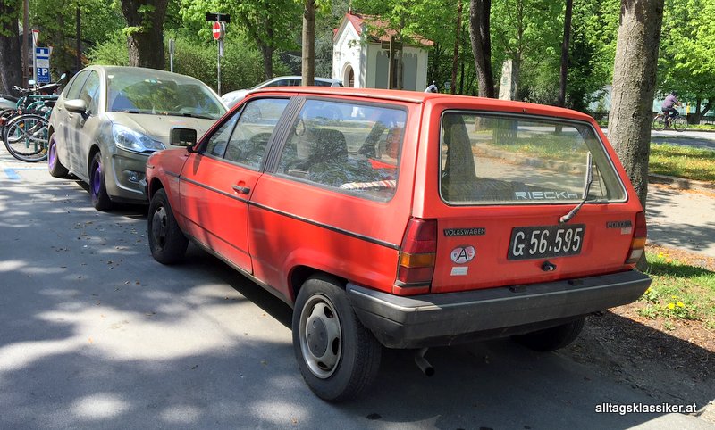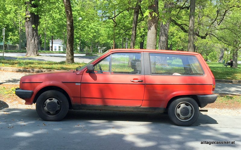 Man sieht ihm seine Jahre an, die er in den Grazer Häuserschluchten zugebracht hat: Dort und da ein wenig Rost, abgesplittertes Plastik am Kühlergrill, Kampfspuren vom Parken in der Stadt, ein verwittertes A-Länderkennzeichenpickerl und der stumpf gewordene Lack. In der Heckscheibe prangt noch der Aufkleber des ausliefernden Händlers RIECKH, der auch schon längst Geschichte ist.
