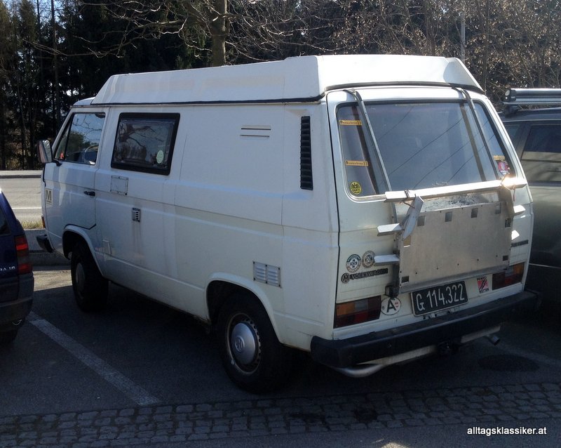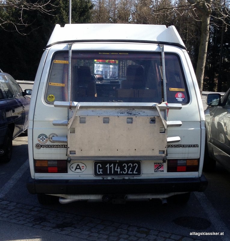 Immer wieder mal fährt mir ein Campingbus mit dem Logo des ehemaligen Grazer Campingbusumrüsters Münnich vor die Linse – hier sogar mit Schwarzblech. Klar, das sie hier in der Heimat des Erbauers stärker verbreitet als anderswo sind. Münnich hat wohl Umbauten u.a. an den VW Bussen der Baureihen T2, T3 und T4 vorgenommen. Die teilweise von Reimo übernommenen Bauteile wurden in Graz zu fertigen Campingbussen ergänzt, bzw. auch eigene Entwicklungen verbaut.