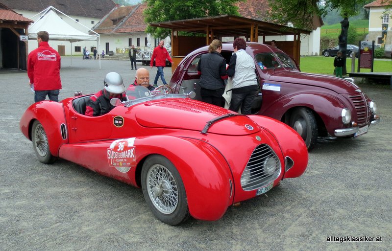 aber auch die wackeren fahrzeugbesatzungen, scheuten kein schlechtwetter und bewegten ihre kostbaren oldtimer, die zwischen 42 und 90 jahre am volant haben durch die wolkenverhangene südsteiermark.