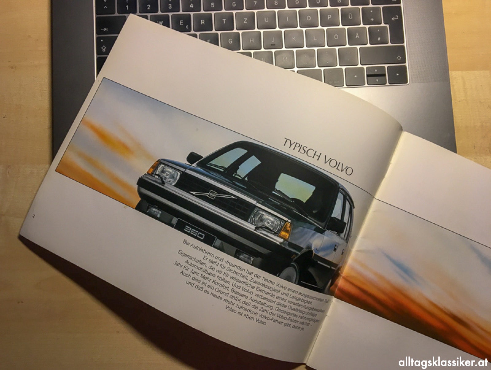 Oder man findet etwas, so wie ich dieses Mal ein Prospekt des Volvo 340 / 360, wie ich es einst gefahren bin. Das trifft sich gut, da so ein 360er wieder weit oben auf der Liste der Autos stehen, die ich nochmals besitzen und fahren möchte. Damals als billige und vor allem schnell verfügbare Übergangslösung für den durch einen Unfall verschiedenen Uno Turbo i.e. ins Haus gekommen und anfangs wenig geschätzt. Die Wertschätzung kam erst später, als er auf weiteren Strecken für ein wohliges Fahrgefühl sorgte und man selbst nach hunderten Kilometern ausstieg, als wäre man erst 20km unterwegs. Daher stammt wohl auch meine Liebe zur Marke Volvo, dazu mein erstes Auto mit Heckantrieb. Als dann der MX-5 ins Haus kam, musste der Volvo flott weg, da waren 2 Autos noch undenkbar für mich. Den 360er hätte man natürlich behalten sollen, als Winter- und Alltagsauto. Aber wenn man jung und d(yn)amisch ist, dann passt so ein altbacken wirkender Volvo natürlich nicht ins Portfolio.