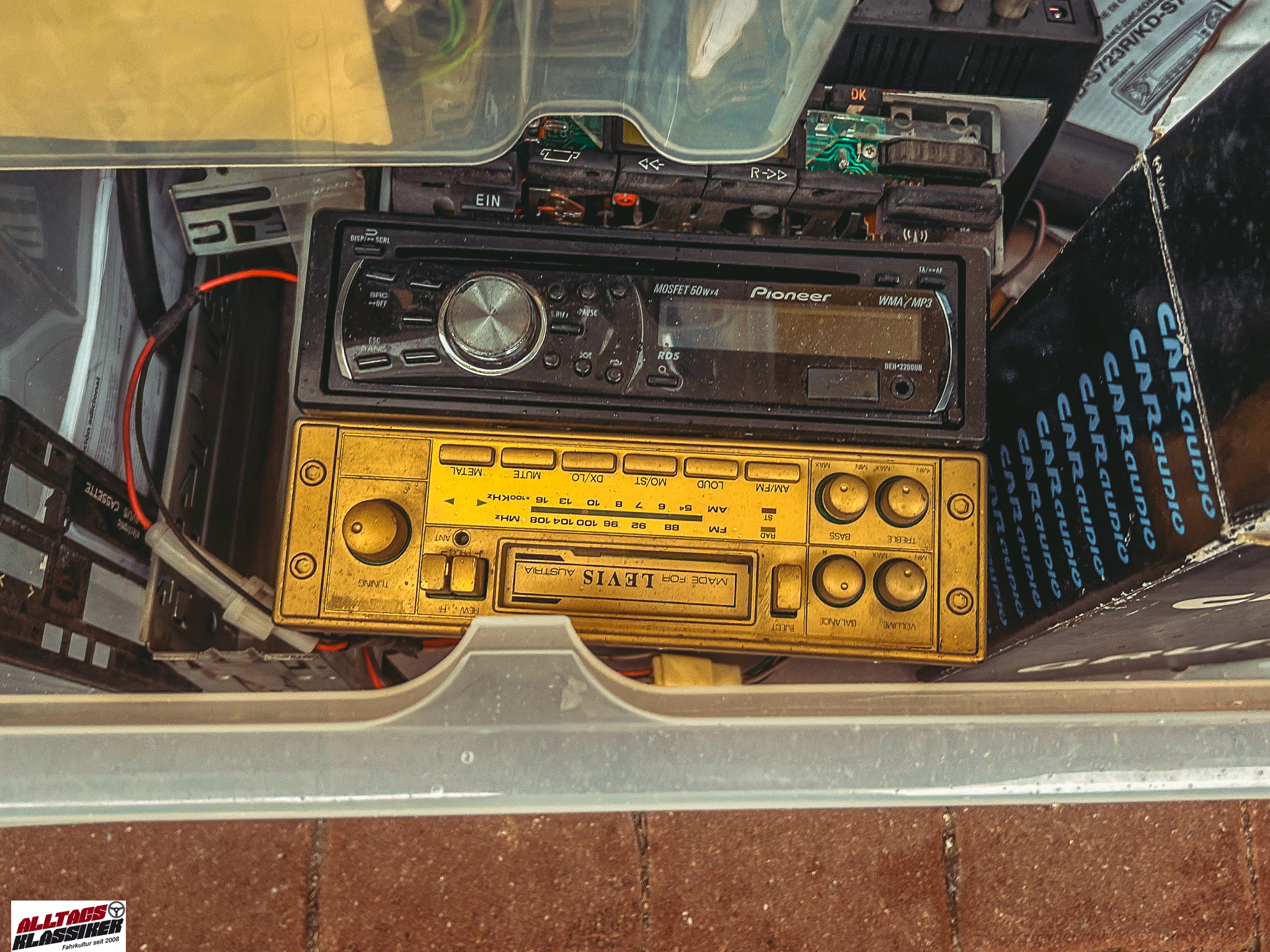 Der Außenbereich der Mehrzweckhalle in Oberdorf am Hochegg war nur dürftig mit Ständen bestückt, aber klar: Wer im Inneren einen trockenen Platz ergattern konnte, der war damit an diesem verregneten Tag fein raus. So war das Outdoorangebot schnell gesichtet und auch gleich das erste Stück eingekauft: Volvi war auf der Suche nach einem passenden Ohrenschmeichler für seinen 2er GTI, da kam das Grundig-Kassettenradio gerade passend.