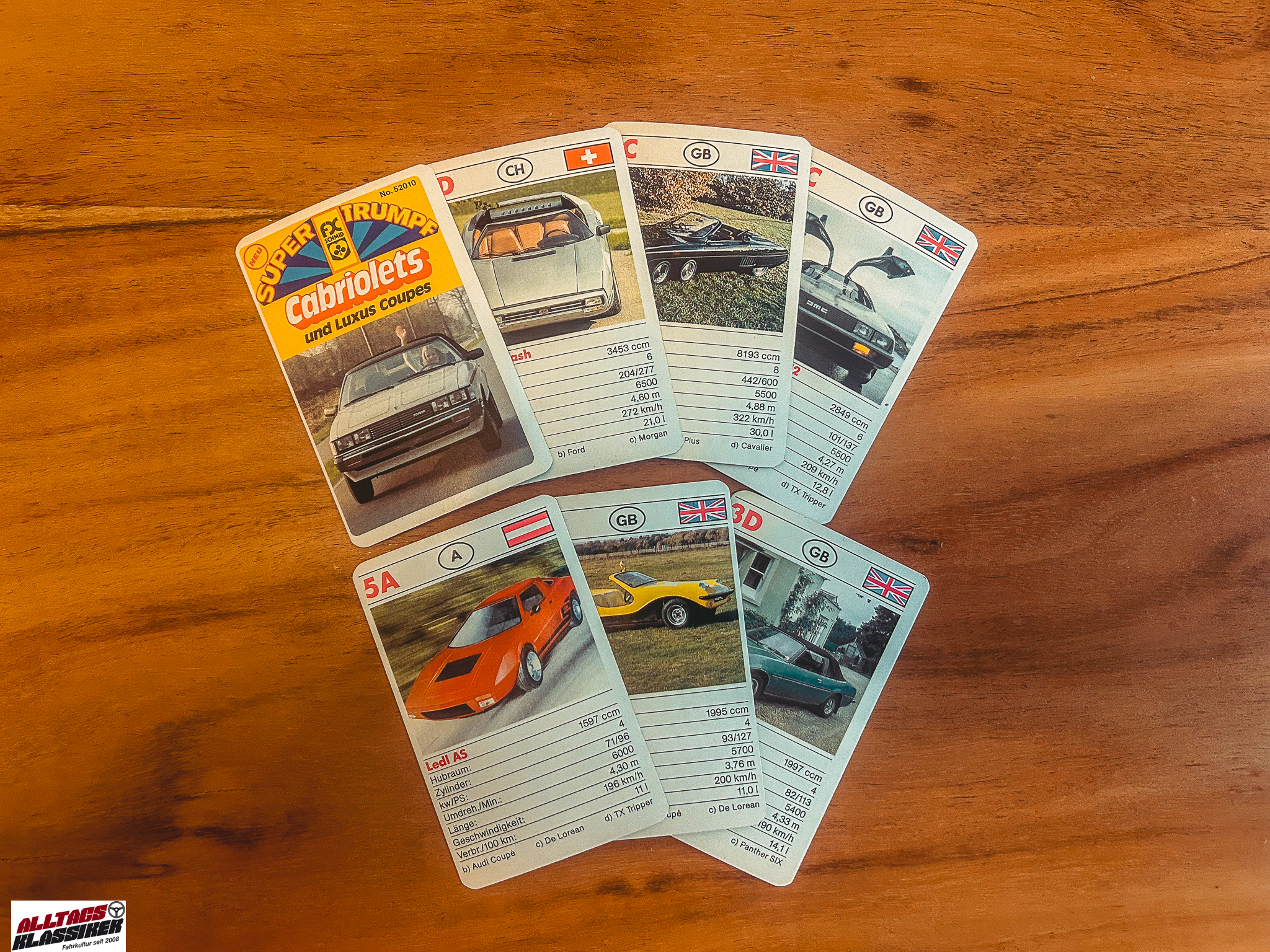 Ebenfalls fündig wurde ich bei Andreas, den ich um das Super Trumpf-Quartett Cabriolets und Luxus-Coupes von FX Schmidt aus Mitte der 1980er Jahre erleichterte. Das beinhaltet einen Ledl AS 160, was immerhin einen heimischen Wagen beinhaltet und ausreichend Kaufargument dafür war.