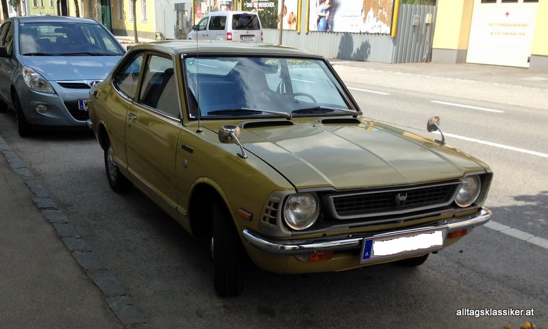 das ist jetzt der fünfte toyota corolla der baureihe e20 ( 1970 bis 1974) der mir, oder einem meiner bilderlieferanten unterkommt und 80 prozent waren in dieses senfgelb getüncht.