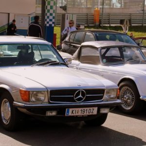 Die Helden des Tages drehen ihre Runden am Ring beim Ventilspiel. Aber auch der Besucherparkplatz lädt zu einem Rundgang ein, um die vielen automobilen Schätze zu bewundern.