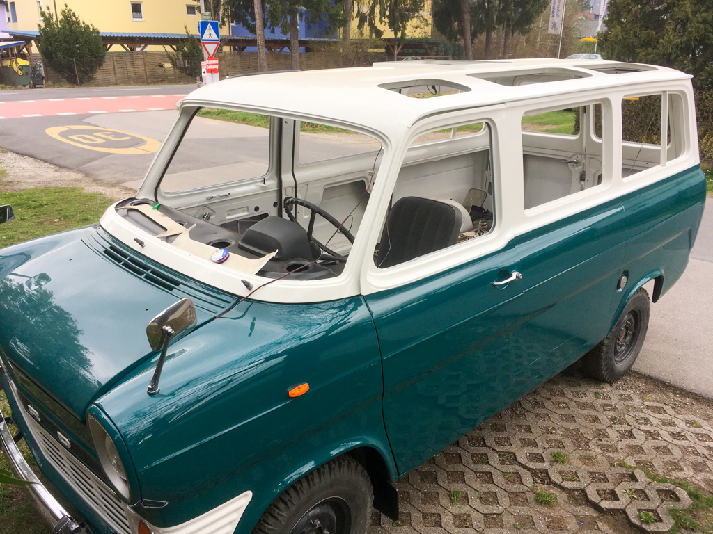 „Da ich vorhatte, bis zum April-SNC den 1967er Ford Transit Panorama fertigzustellen und ein dämlicher Virus dieses Treffen nun vereitelt, hab ich nun weniger Stress bei der Restaurierung. Die Situation kommt mir sogar insofern etwas entgegen, als ich jetzt mehr Zeit habe, die sich sträubende Elektrik und die nicht perfekt passenden Fensterdichtungen zur Mitarbeit zu motivieren.