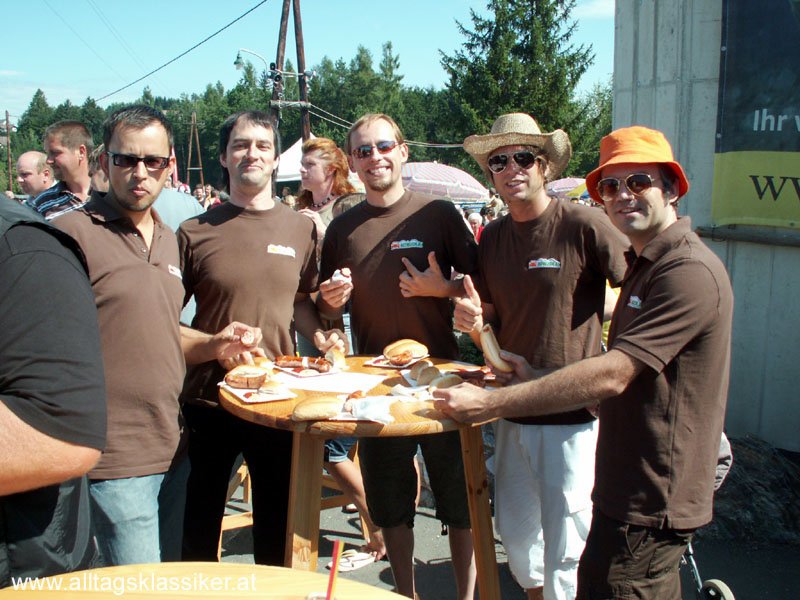 Bratwürstel, Grillhendl und das eine oder andere kühle Bier verschwindet da an einem heißen Vormittag in den Schlünden der Teilnehmerschar, wenn ich mich recht erinnere, war sogar eine Blaskapelle vor Ort, die das Treffen zu einem Frühschoppen erweiterte und dem ganzen Spektakel Volksfestcharakter verleiht.